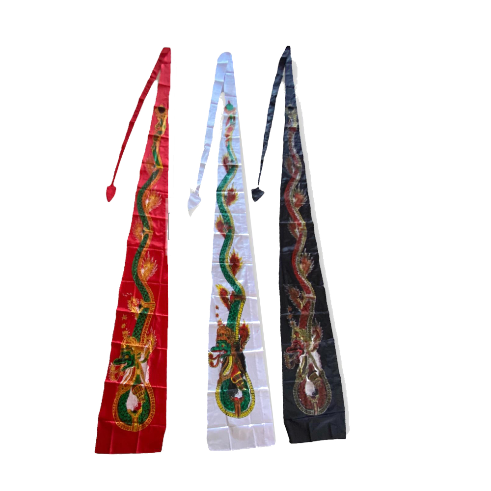 - Umbul Umbul / Lelontek Terbuat dari Kain Satin yang di sablon dengan motif Naga dan varian warna putih, kuning, merah, hitam