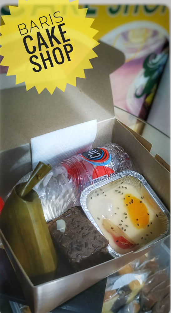 Nasi kotak dengan 3 jenis lauk dan sambal beserta buah