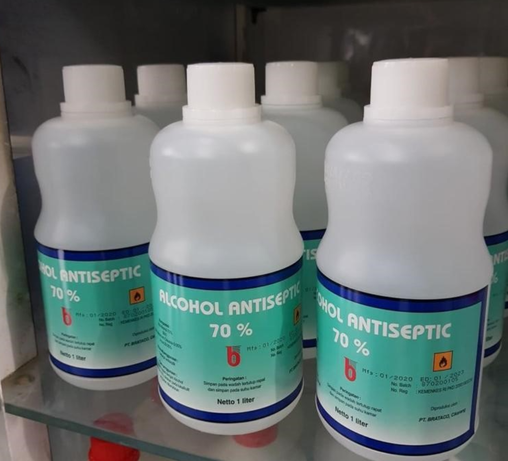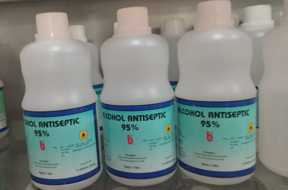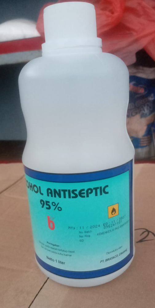 Alkohol 95% Brataco kemasan 1 Liter adalah antiseptik yang mengandung 95% etil alkohol. Selain itu, juga mengandung bahan lain seperti bit 6, Benzalkonium Chlorida 0,05%, dan air. Alkohol 95% Brataco digunakan untuk membersihkan luka dan mensterilkan alat medis