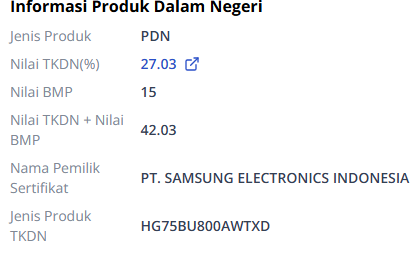 Beli SAMSUNG 75 TKDN H00AWTXDG75BU8